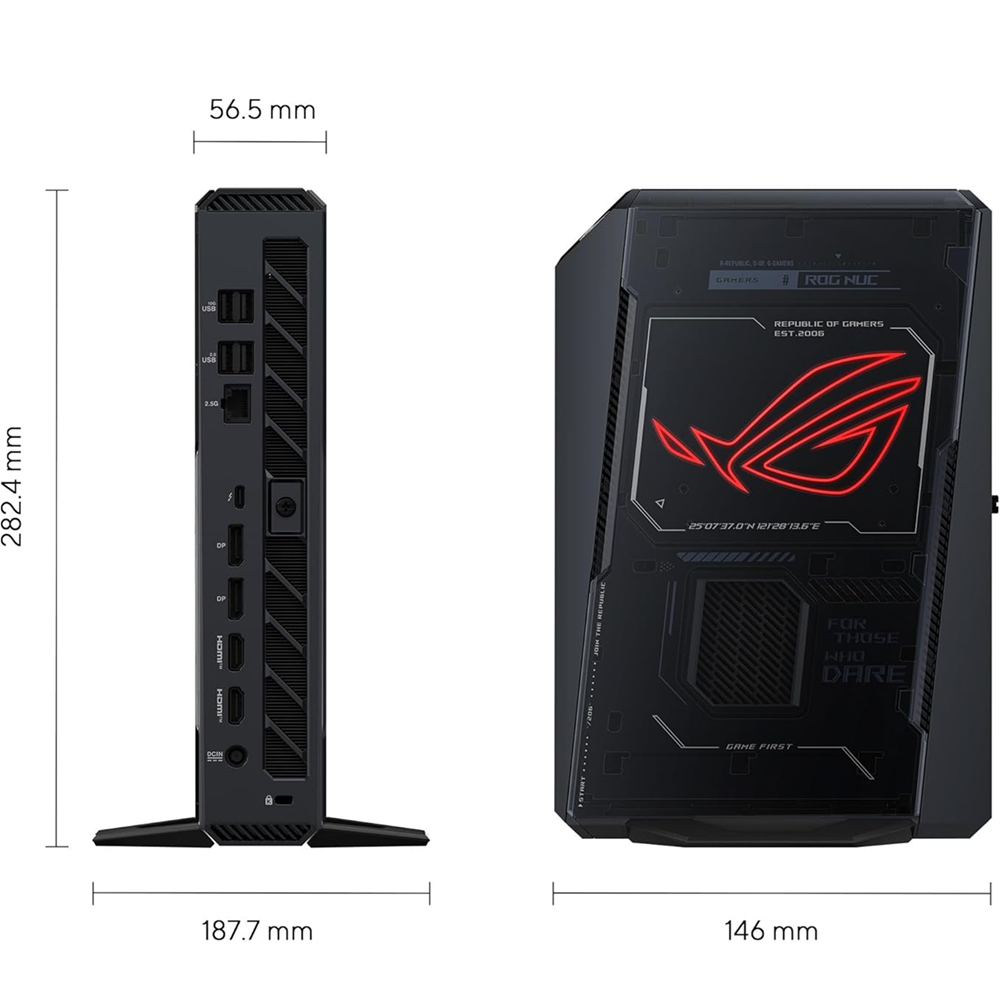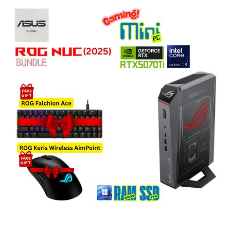 • حزمة ASUS NUC15JNK ROG NUC (2025) للألعاب Mini PC، معالج Intel Core Ultra 9، RTX 5070Ti، 32 جيجابايت رام، 1 تيرابايت SSD، ويندوز 11، لوحة مفاتيح ASUS M602، فأرة ASUS P709