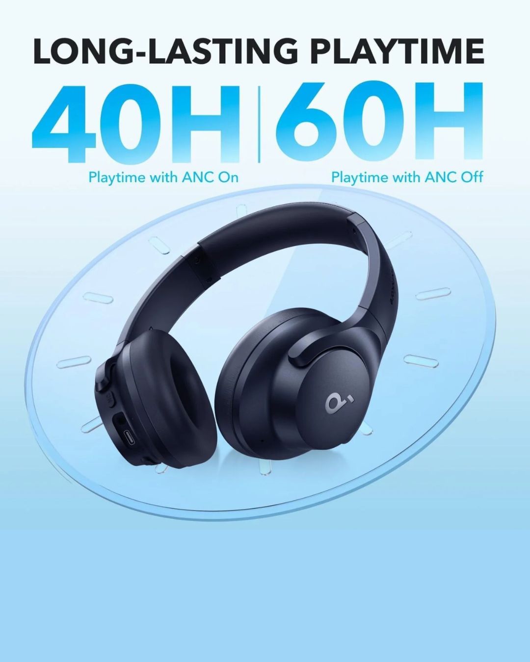 - سماعات ساوندكور من أنكر Q20i مع إلغاء الضوضاء النشط الهجين - أزرق