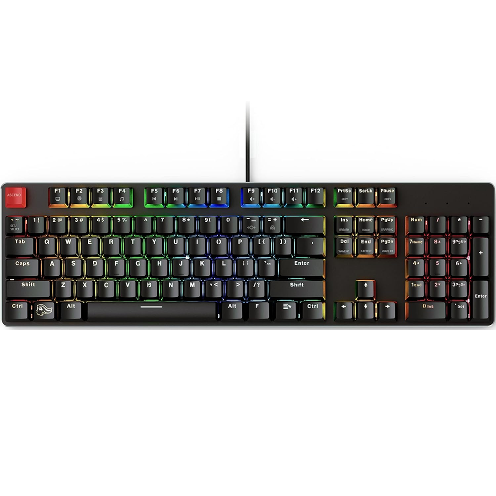 جلوريوس - عدد المفاتيح: 104 مفتاح (مجمّع مسبقًا) - نوع السويتشات: جاتيرون بنية (Gateron Brown) ميكانيكية