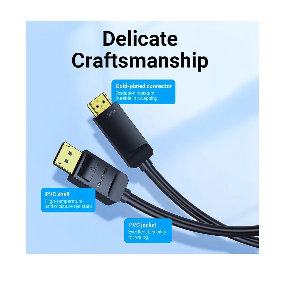 - كابل Vention من DisplayPort إلى HDMI بدقة 4K، من DP إلى HDMI، بطول 5 أمتار (مطلي بالذهب)
