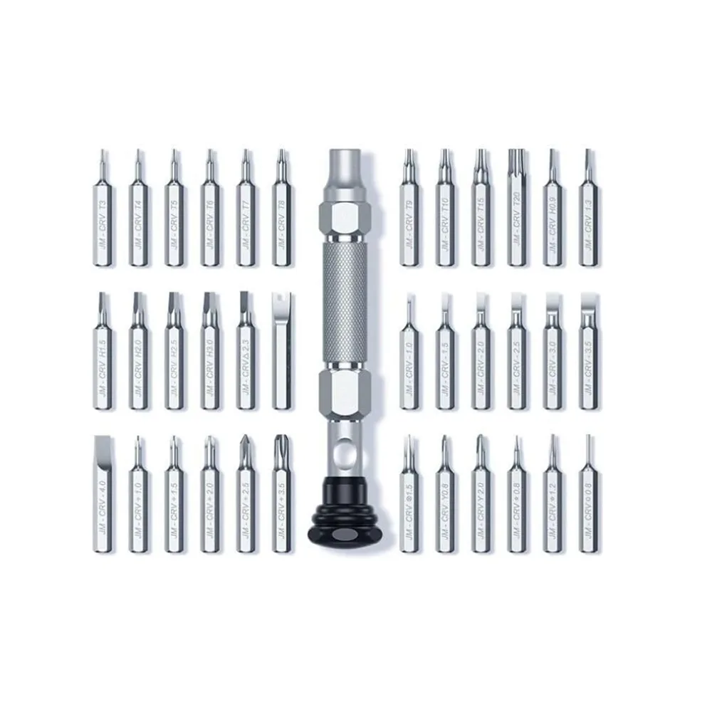 تصميم متعدد الرؤوس 38 في 1: يتضمن 38 رأساً دقيقاً لمفك البراغي لاستخدامات متعددة في الأجهزة الإلكترونية، أجهزة اللابتوب، الهواتف، ومشاريع الصيانة الذاتية (DIY).