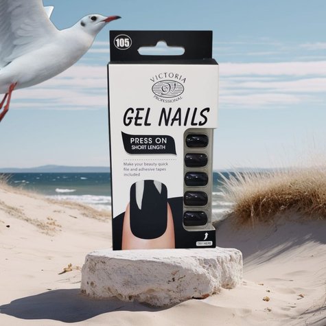 VICTORIA GEL NAILS 105 Perfect for everyday wear, this is the perfect set. With a glossy finish, these medium length fake nails are slimmer on the sides and rounded on top to make fingers look slimmer without being too sharp. Victoria Nail Glue