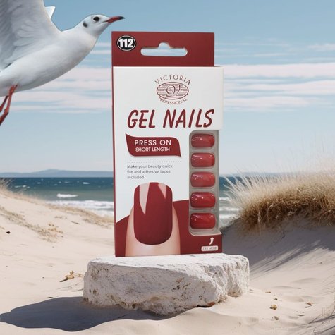 VICTORIA GEL NAILS 112 Perfect for everyday wear, this is the perfect set. With a glossy finish, these medium length fake nails are slimmer on the sides and rounded on top to make fingers look slimmer without being too sharp. Victoria Nail Glue