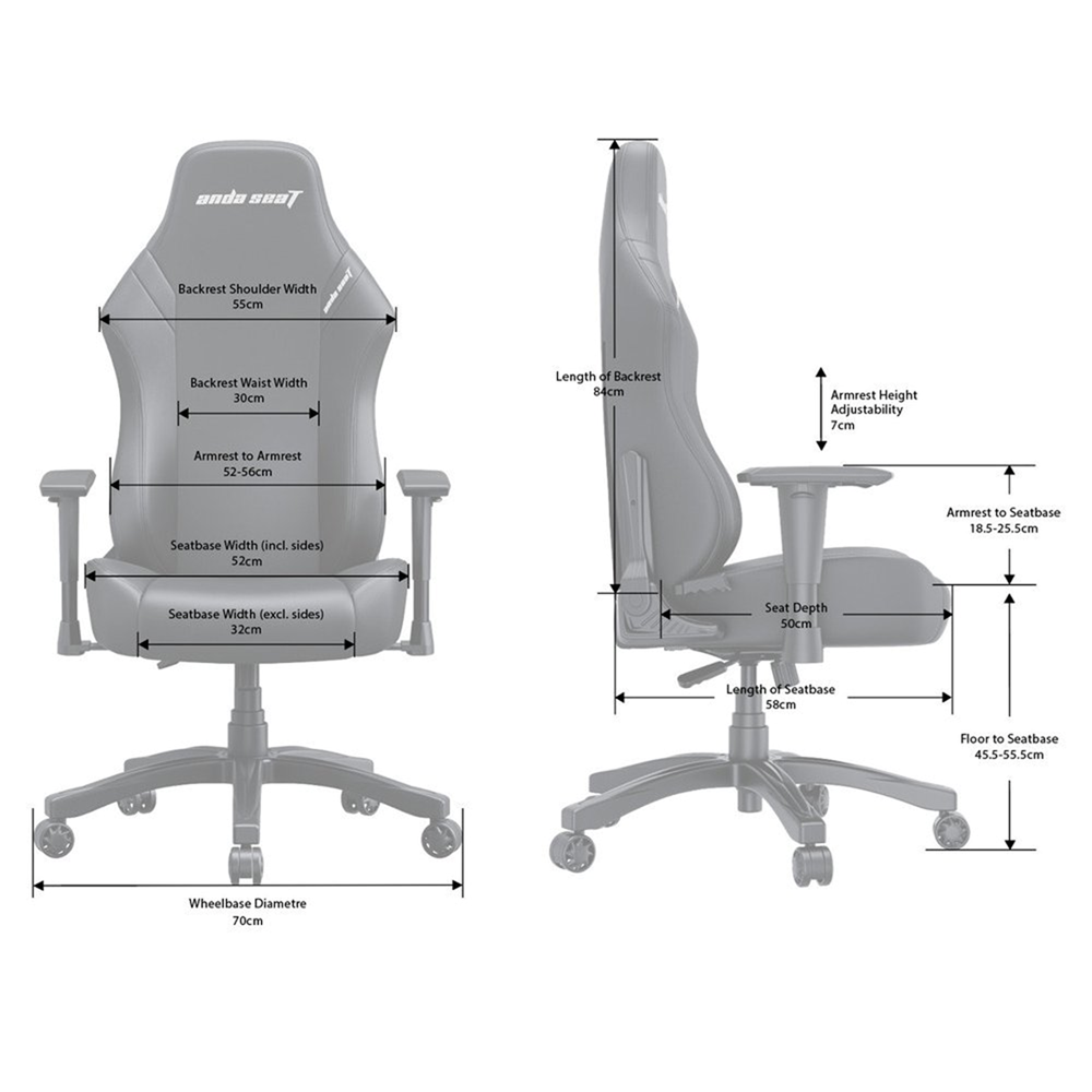 AndaSeat Chair Cover PVC Leather Adjustable Backrest 90° to 160° Back Height 84 cm | Shoulder Width 55 cm