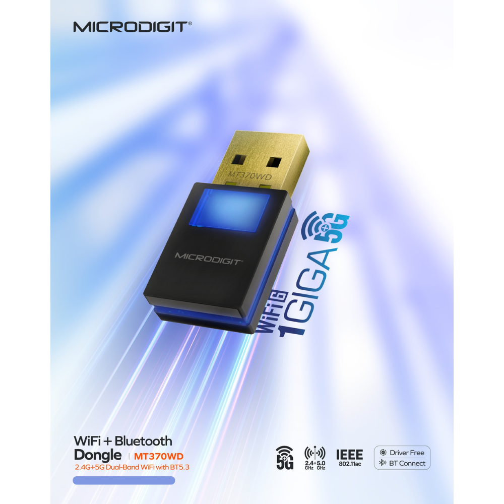 MicroDigit Dual-band dongle with 1Gbps speed Supporting 2.4G + 5G / Bluetooth 5.3