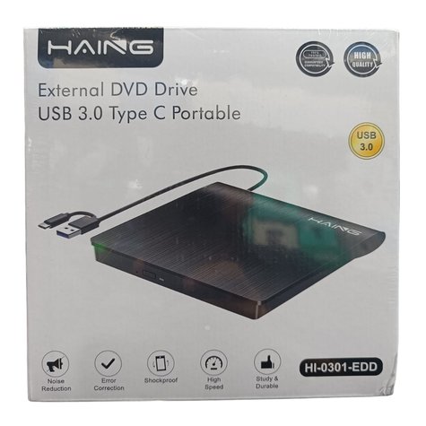 - Haing External DVD Drive Dual Port USB-A 3.0 / USB-C Portable Burner Writer
