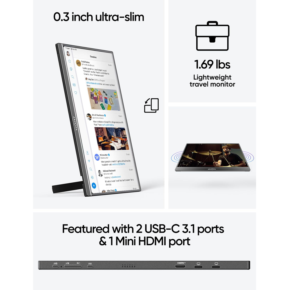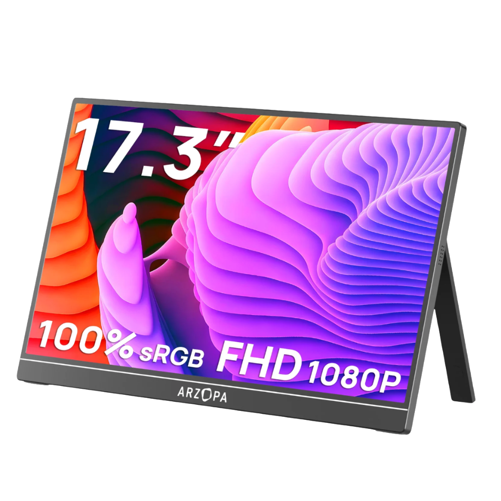 Arzopa 17.3″ A1M FHD IPS Speakers, Mini HDMI, USB-C Portable Monitor