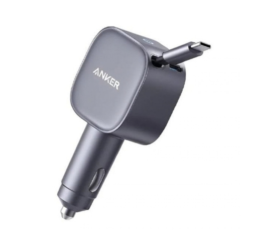 Anker Car Charger (75W Built-In Retrac C Cable) Gray